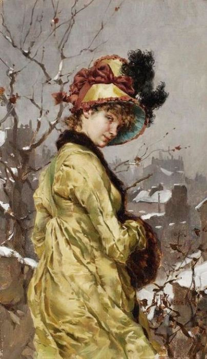 You can own a museum-quality handmade art reproduction of "A Woman in Winter Dress" by artist Frederik Henrdik Kaemmerer. The oil painting will be reproduced on artist-level linen canvas by an expert painter. Below you can select from multiple sizing options and top quality art frames. It is fully customizable.