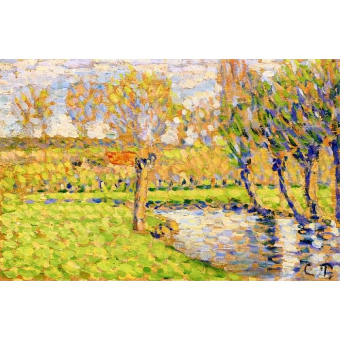 Own a museum-quality painting reproduction of "Banks of the Epte in Eragny" on artist-level linen canvas, originally by artist Camille Pissarro, year 1886. The oil painting will be replicated by a professional artist. You can freely select a size and a frame. If you want to order a size unlisted, please feel free to contact us.