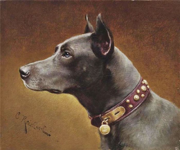 You can own a museum-quality handmade art reproduction of "Black Doberman" by artist Carl Reichert. The oil painting will be reproduced on artist-level linen canvas by an expert painter. Below you can select from multiple sizing options and top quality art frames. It is fully customizable.