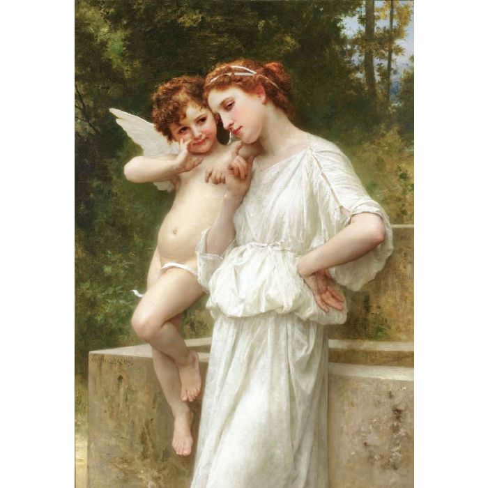 You can own a museum-quality handmade art reproduction of "Cupid's Secrets" by artist William Bouguereau in 1896. The oil painting will be reproduced on artist-level linen canvas by an expert painter. Below you can select from multiple sizing options and top quality art frames. It is fully customizable.