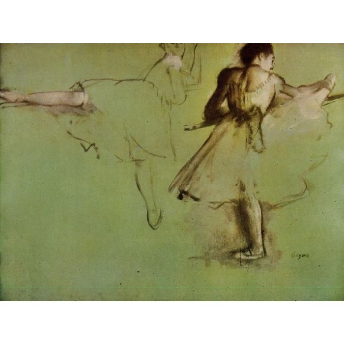Own a museum quality handmade painting reproduction of "Dancers at the Barre, study" on artist-level linen canvas, originally by artist Edgar Degas, year 1877. The oil painting will be replicated by a professional artist. You can freely select a size and a frame. If you want to order a size unlisted, please feel free to contact us.