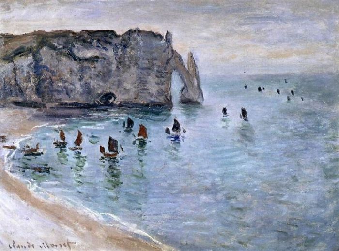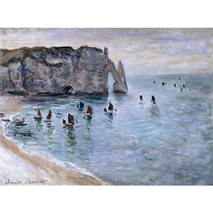 All oil painting reproductions of Etretat, La Porte d'Aval: Fishing Boats Leaving the Harbour can be customized with various options of sizes and frames, original size 60 cm (23.62") * 81 cm (31.89"). Art recreation is also offered for landscape oil paintings if need to change technique, style, or colors. Let HandmadePiece Art Store help you bring this impressionism masterpiece to your life!