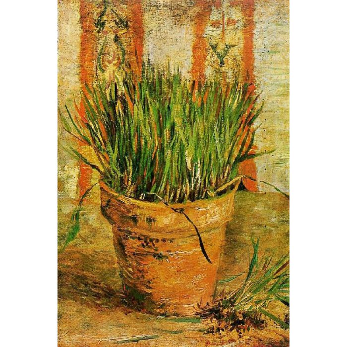 You can own a museum-quality handmade art reproduction of "Flowerpot with Chives" by artist Vincent van Gogh in 1887. The oil painting will be reproduced on artist-level linen canvas by an expert painter. Below you can select from multiple sizing options and top quality art frames. It is fully customizable.