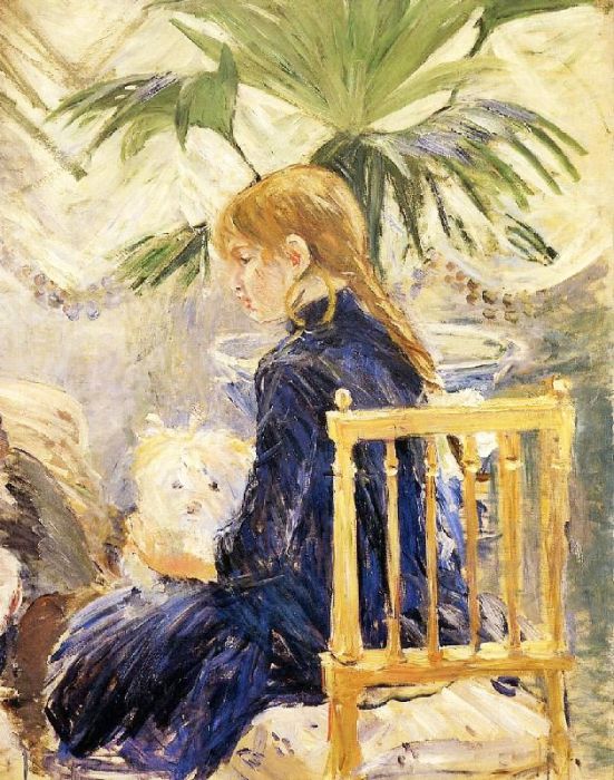 Girl with Dog is a famous oil painting, originally by French artist Berthe Morisot in 1886, with the style of impressionism. The painting now is collected by private as collection. This kind of portrait oil paintings is very common in visual art. Besides, recommend you to view other painting artworks from Berthe Morisot.