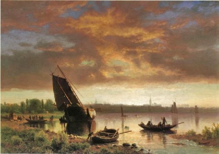 Harbor Scene(also known as potential) is a famous oil painting, originally by American artist Albert Bierstadt in 1869, with the style of romanticism. The painting now is collected by private as collection. This kind of landscape oil paintings is very common in visual art. Besides, recommend you to view other painting artworks from Albert Bierstadt.