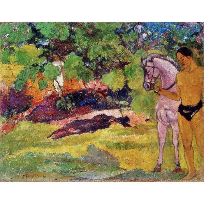 All handmade art reproductions of In the Vanilla Grove, Man and Horse, also known as The Rendezvous can be customized in different sizes and with different frames. You can check the standard sizes and frame options for this popular art online or contact our us for any art advice. Our talented artists also do art recreation for all Symbolist paintings of Paul Gauguin if you are interested in changing the style, colors, technique or even figures of the original piece. Let us help you bring a famous artwork replica to your life and make you home a striking place.