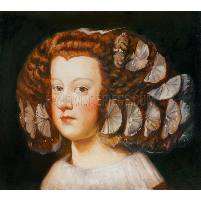 All oil painting reproductions of Infanta Maria Teresa can be customized with various options of sizes and frames, original size 34.3 cm (13.5") * 40 cm (15.75"). Art recreation is also offered for portrait oil paintings if need to change technique, style, or colors. Let HandmadePiece Art Store help you bring this baroque masterpiece to your life!