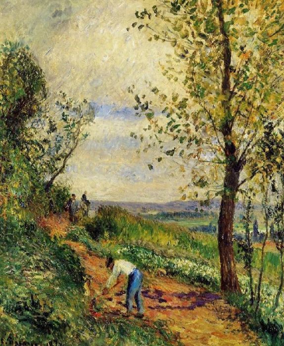 Landscape with a Man Digging is one of the famous paintings created by the French artist Camille Pissarro in 1877. This masterpiece is now collected by a private place which offers us less opportunity to view this painting of Camille Pissarro in person. Many art lovers like artworks with the style of Impressionism. If you are not familiar with Impressionism, it will be much easier for you to understand after you view more paintings with the style on our website.