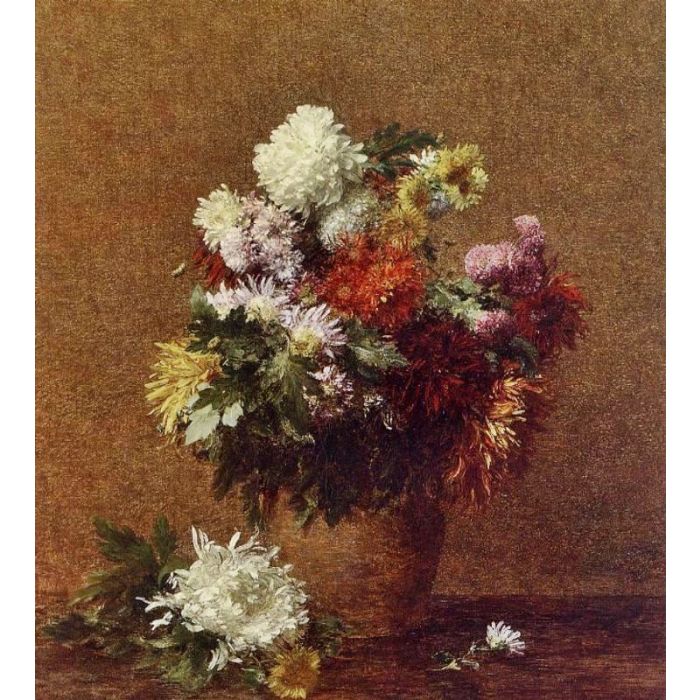 Own a museum-quality painting reproduction of "Large Bouquet of Chrysanthemums" on artist-level linen canvas, originally by artist Henri Fantin-Latour, year 1882.The oil painting will be reproduced by one of our professional artists. You can freely select a size and a frame. If you want to order any size unlisted, please feel free to contact us.