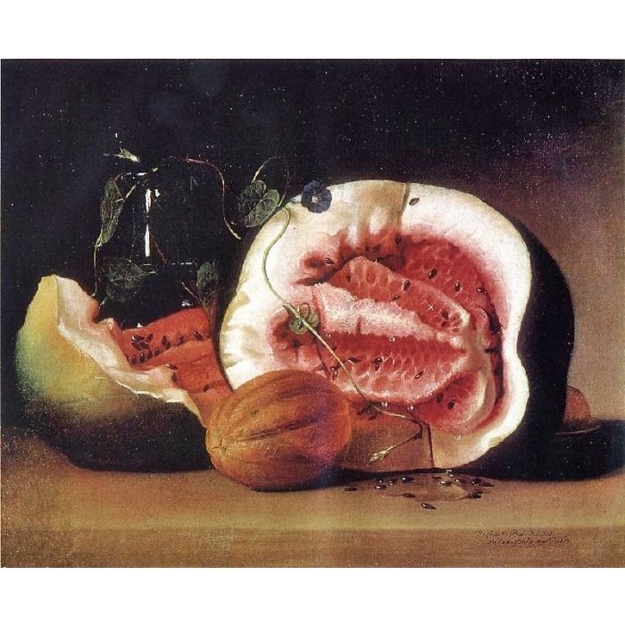 Own a museum-quality painting reproduction of "Melons and Morning Glories" on artist-level linen canvas, originally by artist Raphaelle Peale, year 1813.The oil painting will be reproduced by one of our professional artists. You can freely select a size and a frame. If you want to order any size unlisted, please feel free to contact us.