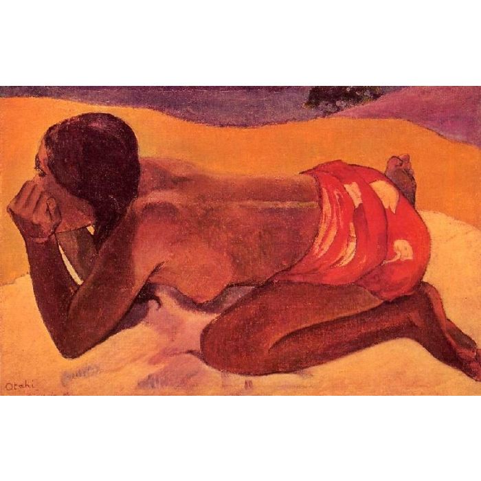 All handmade art reproductions of Otahi, also known as Alone can be customized in different sizes and with different frames. You can check the standard sizes and frame options for this popular art online or contact our us for any art advice. Our talented artists also do art recreation for all Symbolist paintings of Paul Gauguin if you are interested in changing the style, colors, technique or even figures of the original piece. Let us help you bring a famous artwork replica to your life and make you home a striking place.