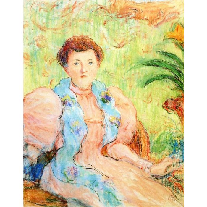 You can own a museum-quality handmade art reproduction of "Portrait of the Comtesse Antoine de la Rochefoucauld" by artist Claude-Emil Schuffenecker in 1896. The oil painting will be reproduced on artist-level linen canvas by an expert painter. Below you can select from multiple sizing options and top quality art frames. It is fully customizable.