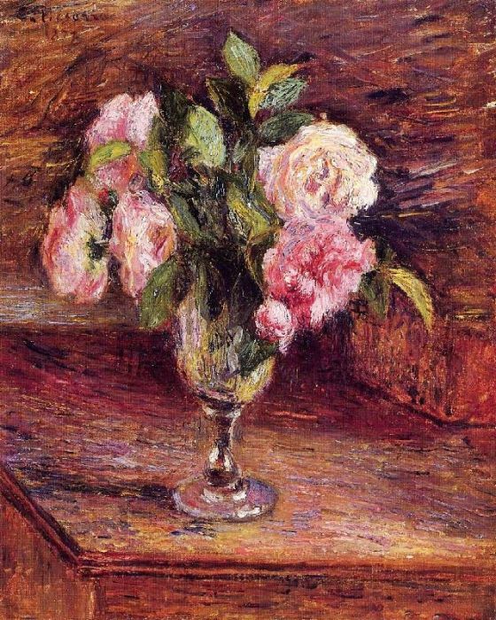 Roses in a Glass is one of the famous paintings created by the French artist Camille Pissarro in 1877. This masterpiece is now collected by a private place which offers us less opportunity to view this painting of Camille Pissarro in person. Many art lovers like artworks with the style of Impressionism. If you are not familiar with Impressionism, it will be much easier for you to understand after you view more paintings with the style on our website.