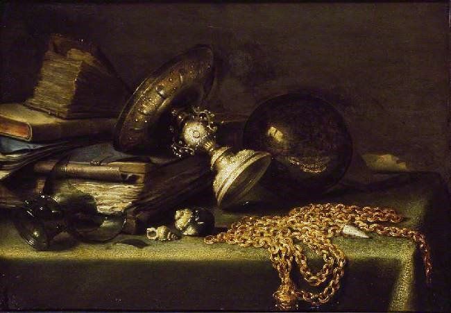 Still Life with a Gold Chain is a famous oil painting, originally by Dutch artist Pieter Claesz in 1636, with the style of baroque. The painting now is collected by Ashmolean Museum. This kind of still life oil paintings is very common in visual art. Besides, recommend you to view other painting artworks from Pieter Claesz.
