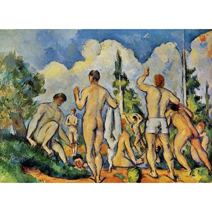 The Bathers is a famous oil painting, originally by French artist Paul Cézanne in 1894, with the style of post-impressionism. The painting now is collected by Musée du Louvre. This kind of nude oil paintings is very common in visual art. Besides, recommend you to view other painting artworks from Paul Cézanne.