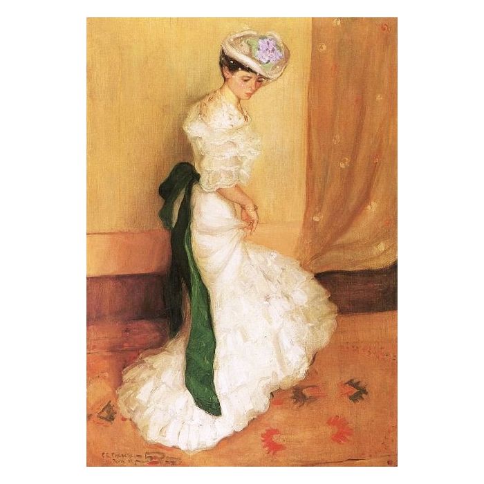 You can own a museum-quality handmade art reproduction of "The Green Sash" by artist Frederick Carl Frieseke in 1904. The oil painting will be reproduced on artist-level linen canvas by an expert painter. Below you can select from multiple sizing options and top quality art frames. It is fully customizable.