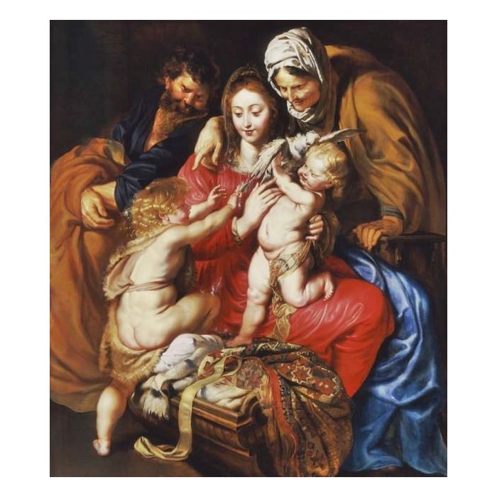 All oil painting reproductions of The Holy Family with Saint Elizabeth, Saint John and a Dove can be customized with various options of sizes and frames, original size 138.4 cm (54.49") * 120.6 cm (47.48"). Art recreation is also offered for nude oil paintings if need to change technique, style, or colors. Let HandmadePiece Art Store help you bring this baroque masterpiece to your life!