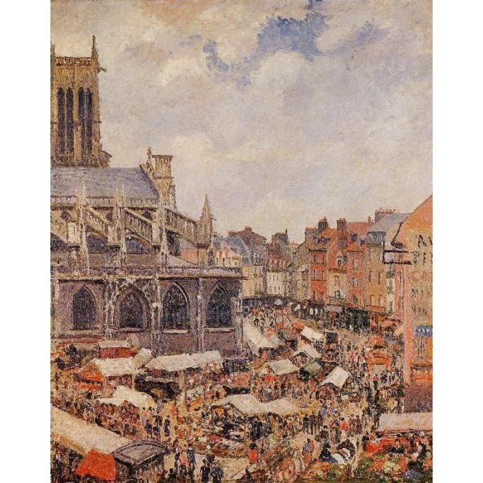 Own a museum-quality painting reproduction of "The Market by the Church of Saint-Jacques, Dieppe" on artist-level linen canvas, originally by artist Camille Pissarro, year 1901. The oil painting will be replicated by a professional artist. You can freely select a size and a frame. If you want to order a size unlisted, please feel free to contact us.