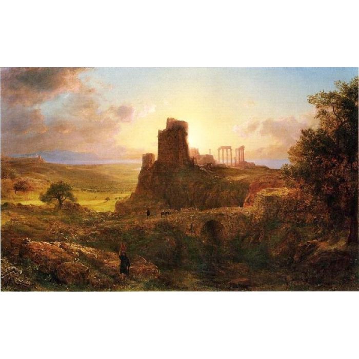 Own a museum-quality hand-painted art reproduction of "The Ruins at Sunion, Greece" on artist-level linen canvas, originally by artist Frederic Edwin Church, year 1869. The oil painting will be replicated by a professional artist. You can freely select a size and a frame. If you want to order a size unlisted, please feel free to contact us.