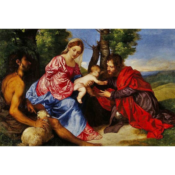 The Virgin and Child with Saint John the Baptist and an Unidentified Saint is a famous oil painting, originally by Italian artist Titian in 1520, with the style of renaissance. The painting now is collected by Scottish National Gallery. This kind of portrait oil paintings is very common in visual art. Besides, recommend you to view other painting artworks from Titian.