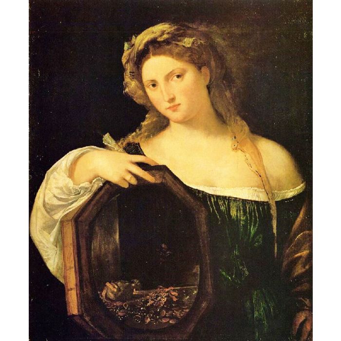 Vanity is a famous oil painting, originally by Italian artist Titian in 1515, with the style of renaissance. The painting now is collected by Alte Pinakothek. This kind of portrait oil paintings is very common in visual art. Besides, recommend you to view other painting artworks from Titian.