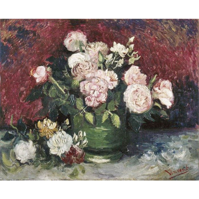 All handmade art reproductions of Vase with Peonies and Roses can be customized in different sizes and with different frames. You can check the standard sizes and frame options for this popular art online or contact our us for any art advice. Our talented artists also do art recreation for all Post-Impressionist paintings of Vincent van Gogh if you are interested in changing the style, colors, technique or even figures of the original piece. Let us help you bring a famous artwork replica to your life and make you home a striking place.