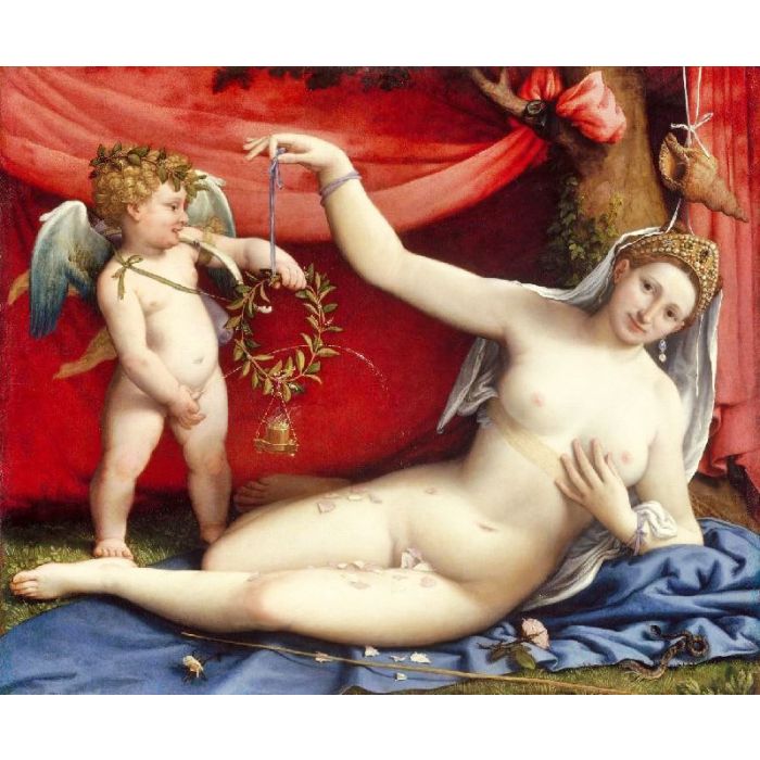 Venus and Cupid is a famous oil painting, originally by Italian artist Lorenzo Lotto in 1525, with the style of renaissance. The painting now is collected by Metropolitan Museum of Art. This kind of nude oil paintings is very common in visual art. Besides, recommend you to view other painting artworks from Lorenzo Lotto.