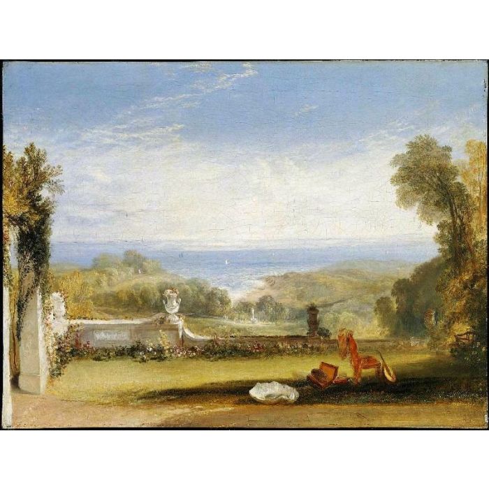 Own a museum-quality hand painted art reproduction of "View from the Terrace of a Villa at Niton, Isle of Wight, from Sketches by a Lady" on artist-level linen canvas, originally by artist Joseph Mallord William Turner, year 1826. The oil painting will be replicated by a professional artist. You can freely select a size and a frame. If you want to order a size unlisted, please feel free to contact us.