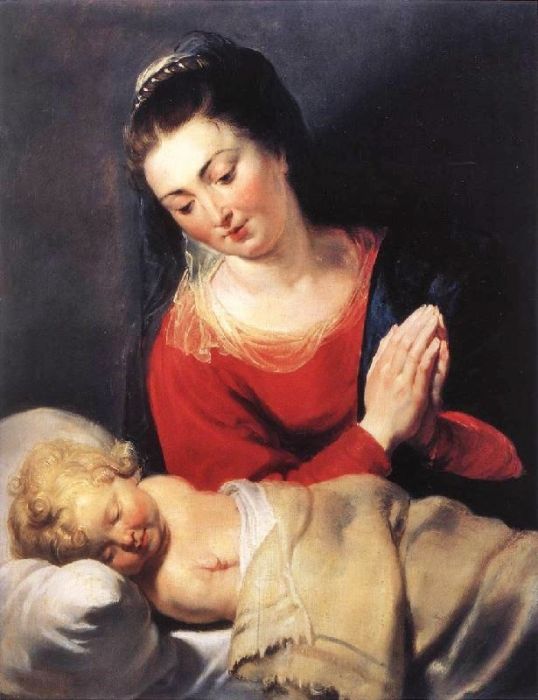 Virgin in Adoration before the Christ Child is a famous oil painting, originally by Belgian artist Peter Paul Rubens in 1615, with the style of baroque. The painting now is collected by Rockoxhuis. This kind of portrait oil paintings is very common in visual art. Besides, recommend you to view other painting artworks from Peter Paul Rubens.