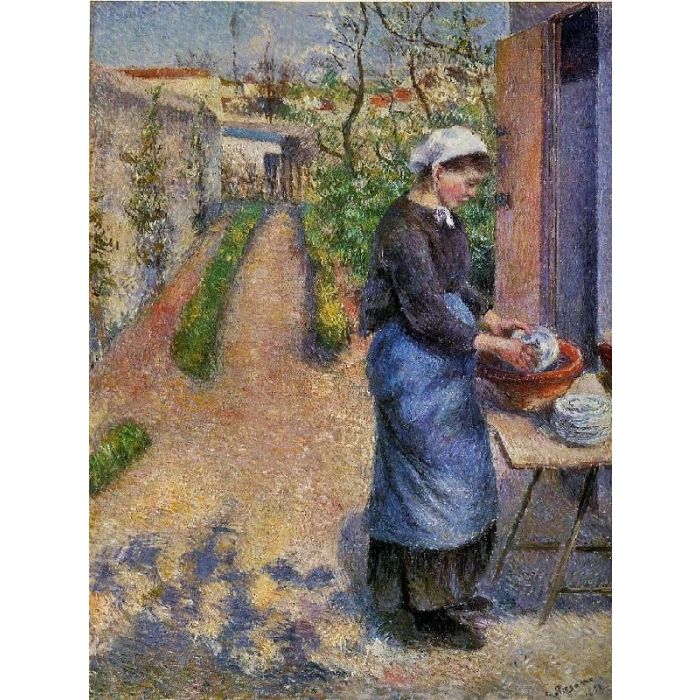 Own a museum-quality painting reproduction of "Young Woman Washing Plates" on artist-level linen canvas, originally by artist Camille Pissarro, year 1882. The oil painting will be replicated by a professional artist. You can freely select a size and a frame. If you want to order a size unlisted, please feel free to contact us.
